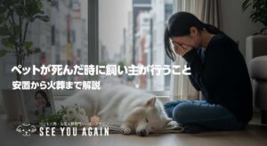 SEE YOU AGAINでは、出張火葬や自宅でのお別れを通じて、飼い主様の想いを大切にしながら、心温まるお見送りをサポートしています。この記事が、ペットとのお別れを迎える方のお役に立てれば幸いです。