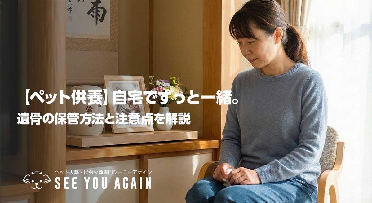 愛するペットを見送ったあと、「まだ離れたくない」「できるだけ長くそばに置いておきたい」と感じるのは、ごく自然な気持ちです。このため、近年では遺骨をお墓に納めず、家の中で大切に保管する「自宅供養(手元供養)」を選ぶ方も増えています。